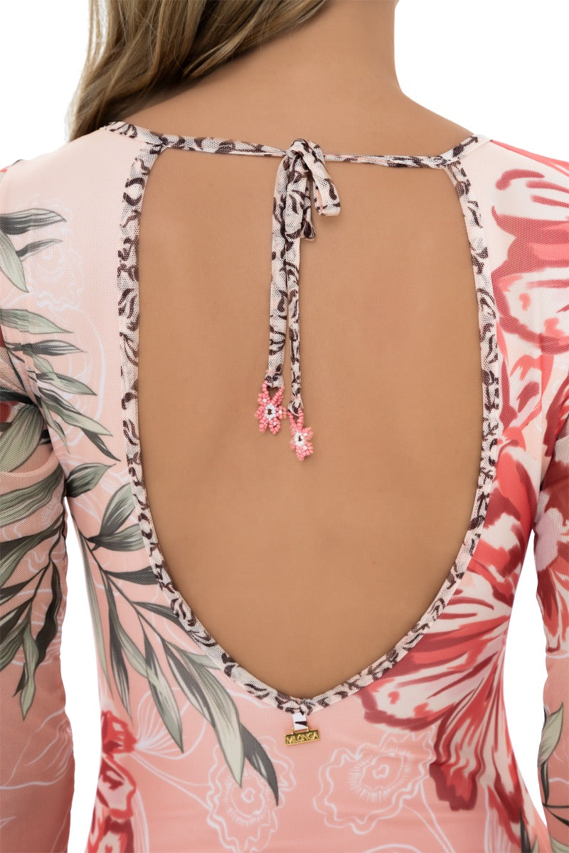 Vestido de baño / Entero, traje de baño de una pieza con escote profundo, espalda abierta y estampado localizado. Su copa removible y diseño artesanal aportan un estilo femenino y elegante.