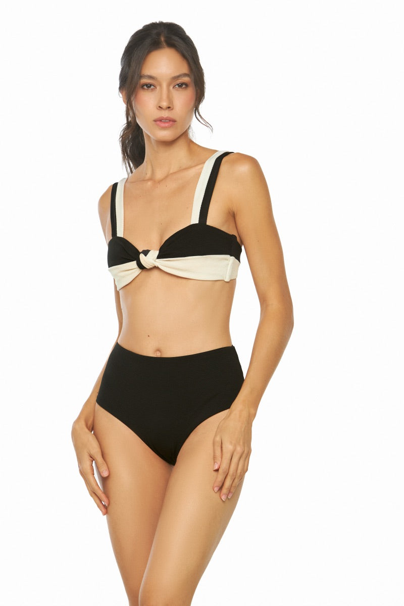 Top de Bikini Canelo tipo strapless está confeccionado en tela de baño elástica. Su acabado texturizado en la tela y los bloques de color le añaden un acabado limpio y moderno.