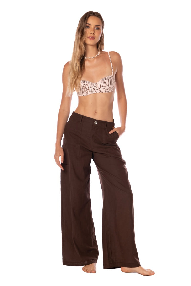 El top Sunny de la colección con estampado Eternal Sands combina la sofisticación clásica con una sujeción estructurada. Con un sutil estampado de vetas de madera en tonos tierra, este top de bikini con aros ofrece una silueta estilizada y favorecedora con un encanto atemporal.