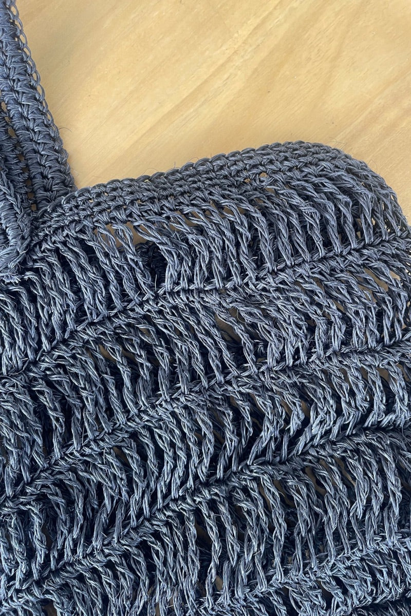 Hecha a mano con fibras naturales por artesanos de Santander, Colombia, esta bolsa está diseñada para llevar tus esenciales de playa o acompañarte en tu día a día.