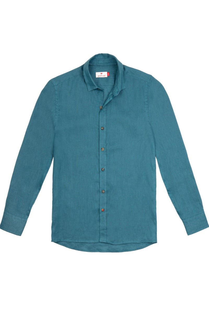 Camisa Lino Manga Larga De Hombre - Azul Petróleo - Redflag