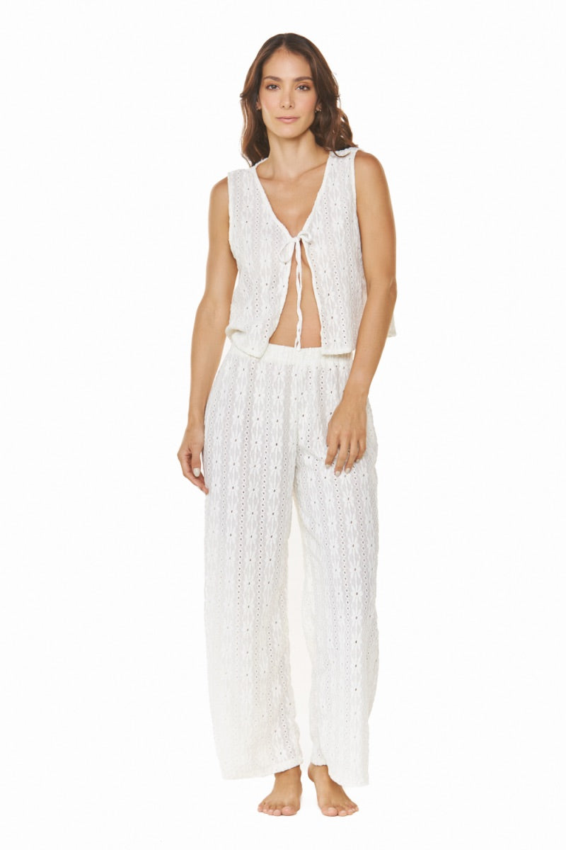 La salida de baño en tela bordada blanca, con diseño de manga sisa y amarre frontal, ofrece un toque elegante y práctico. Su textura tejida proporciona comodidad y frescura, ideal para usar como prenda exterior o como salida de playa. Cada pieza se vende por separado, permitiendo combinarla según tu estilo y ocasión. Perfecta para quienes buscan sofisticación y versatilidad en un solo look.