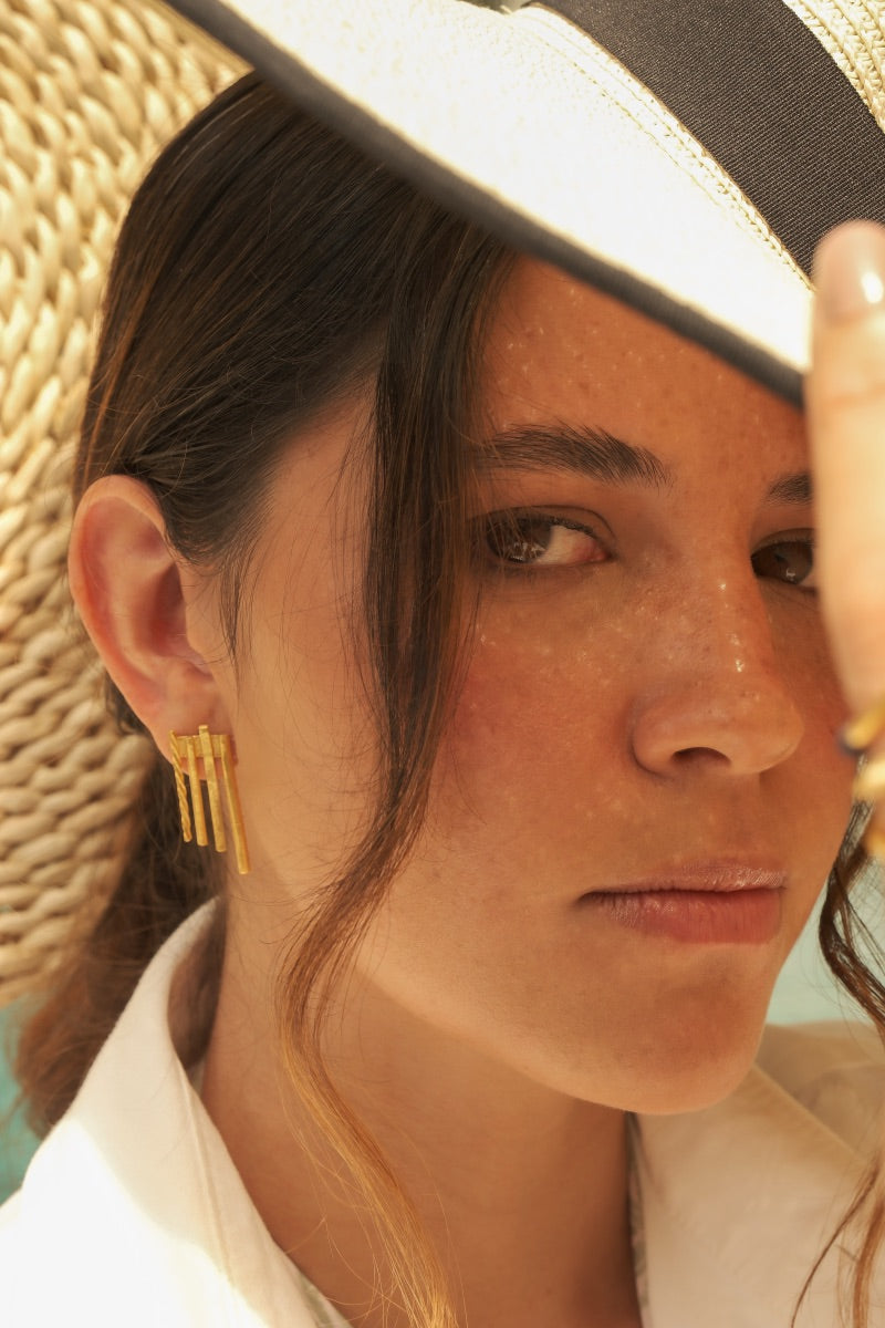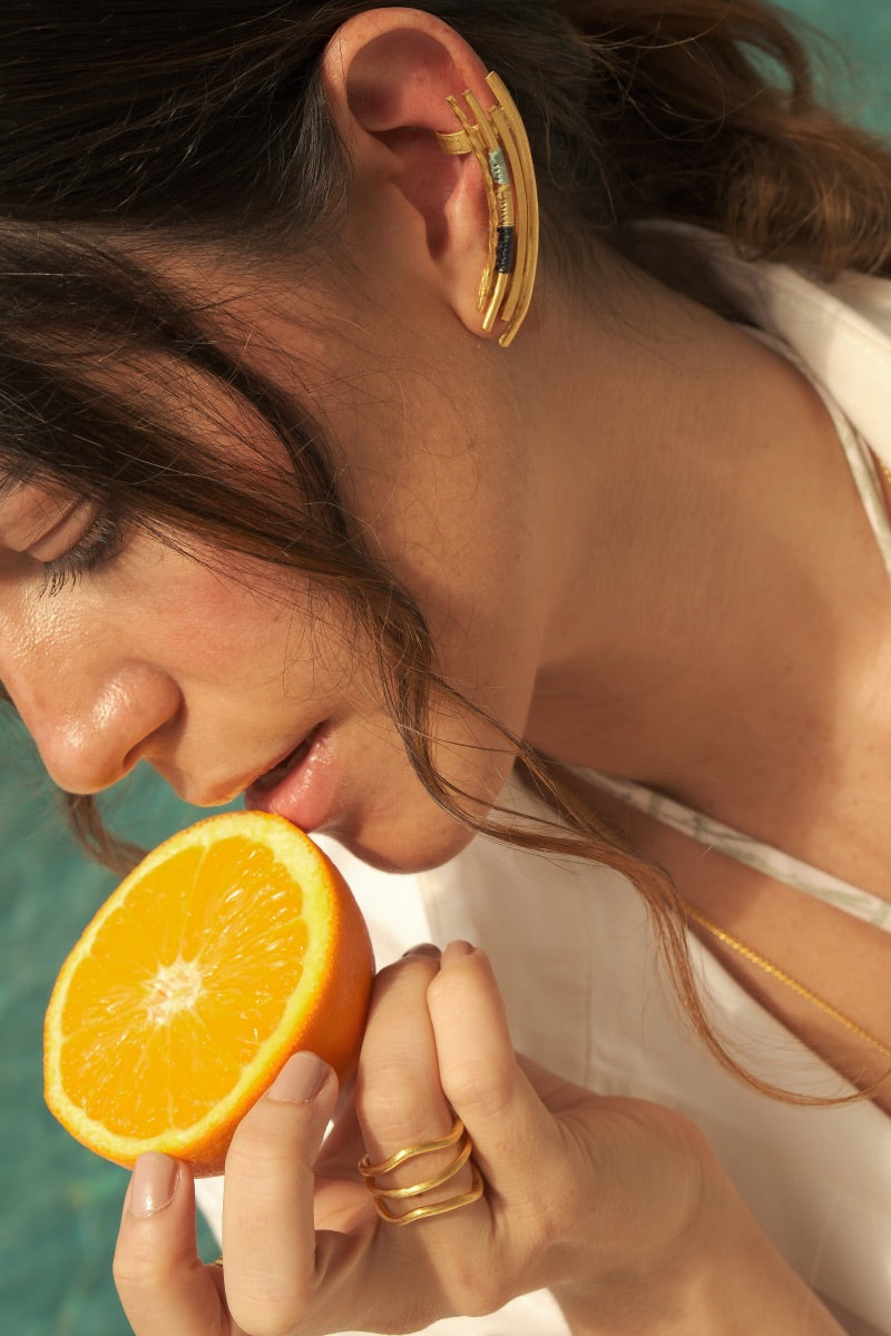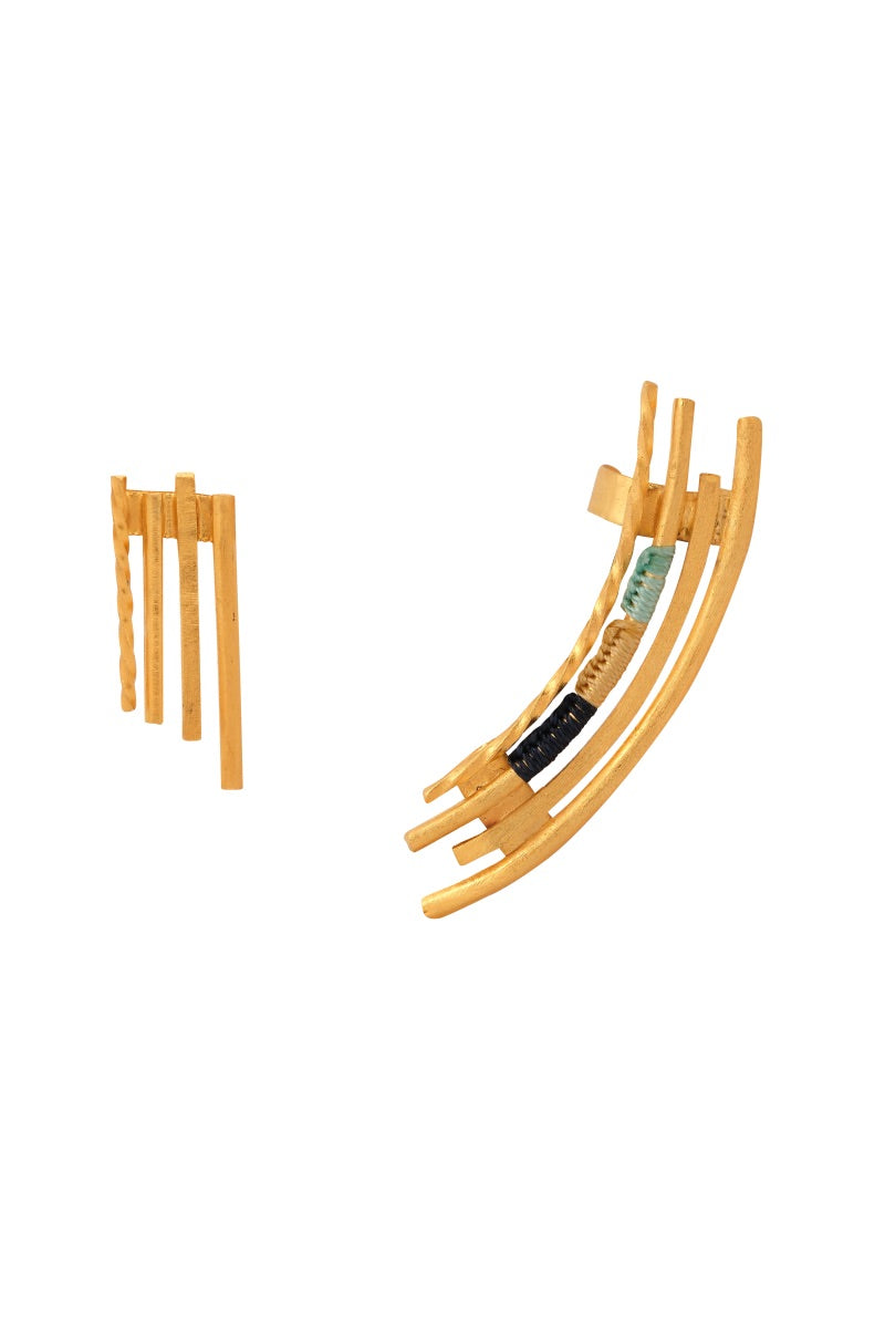 Earcuff elaborado en bronce con baño en oro de 24k, viene acompañado de un topo. Este earcuff viene con dos piezas.