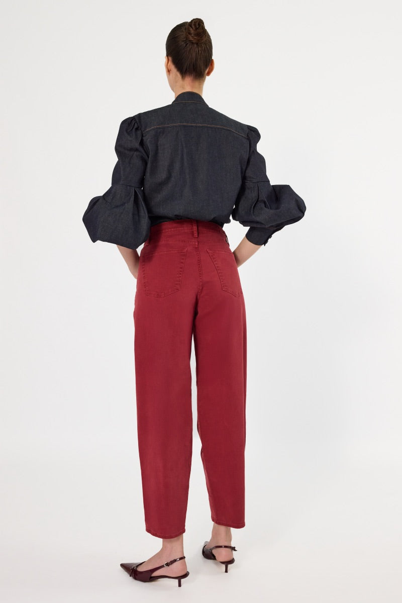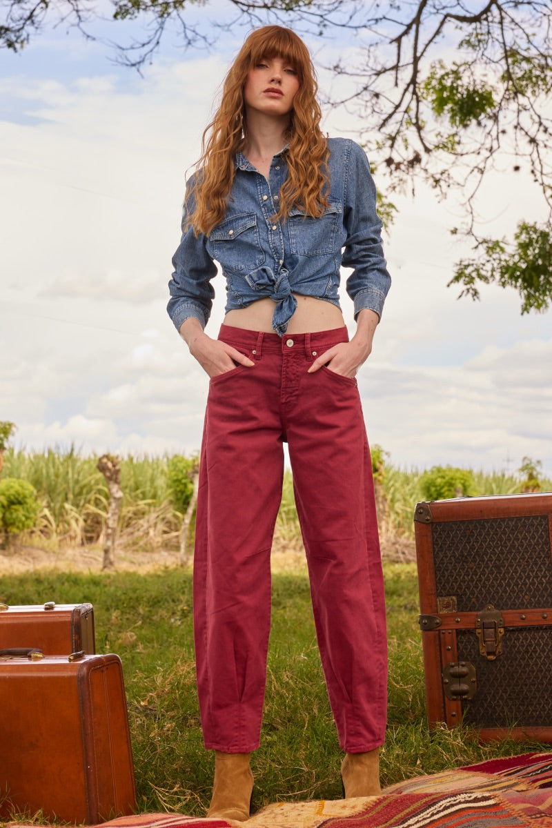 Pantalón Denim Barrel High Rise Vinotinto - 250231322 - Project Denim