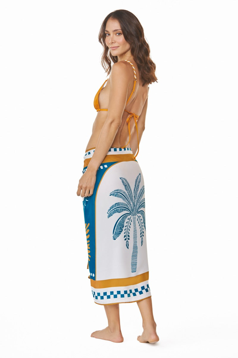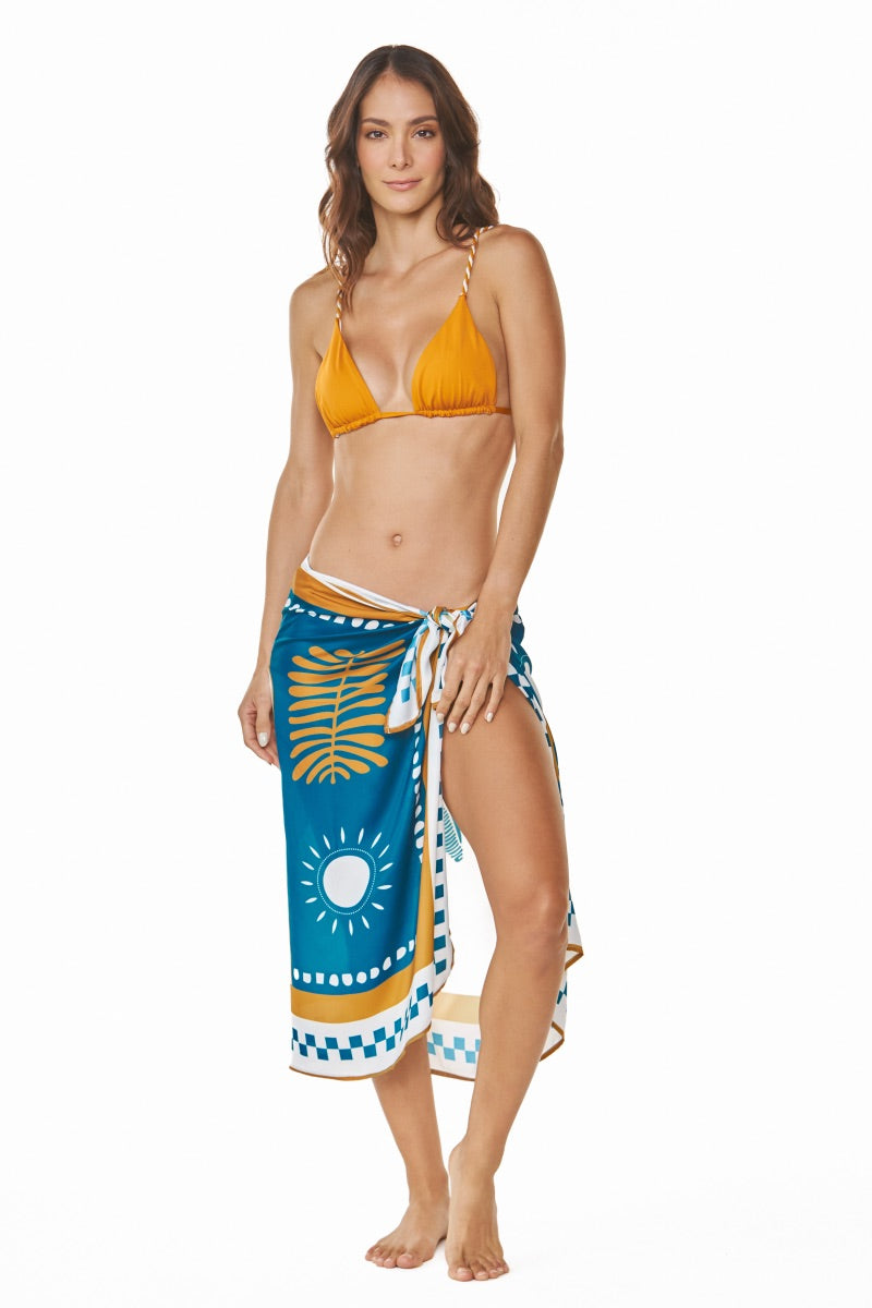 Este pareo largo en tono azul turquesa, elaborado con tela semisatinada suave y ligera, ofrece múltiples formas de uso para adaptarse a tu estilo. Perfecto como salida de playa o como un elegante complemento para tu atuendo diario, combina comodidad y sofisticación en una sola prenda. Ideal para quienes buscan versatilidad con un toque de distinción.
