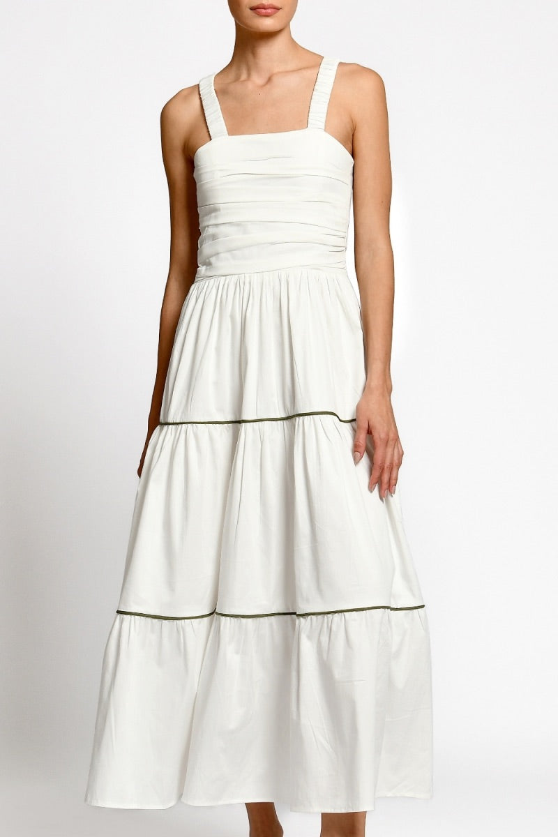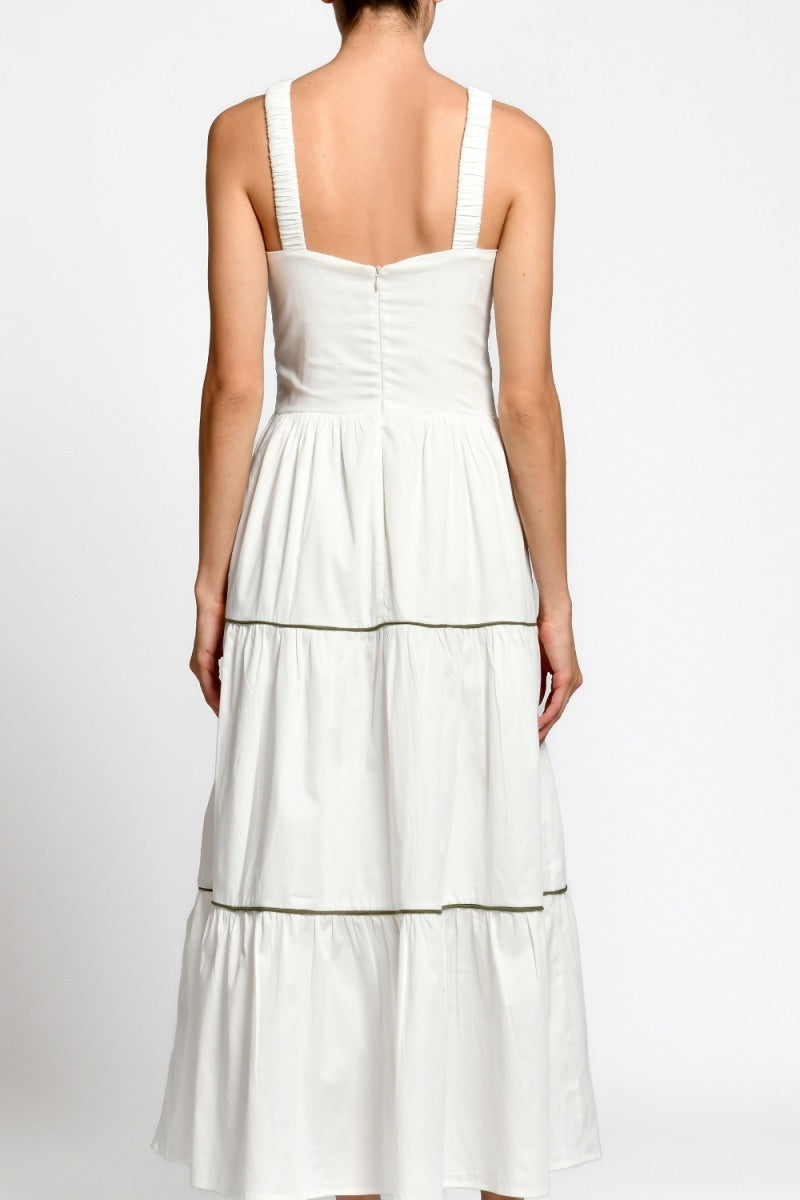 Vestido largo con fruncido en el busto y tirantes anchos para mayor comodidad. Su diseño de falda amplia en capas aporta movimiento y frescura, perfecto para looks de verano, playa o eventos casuales. Con un estilo romántico y atemporal, es ideal para combinar con sandalias o accesorios boho chic.
